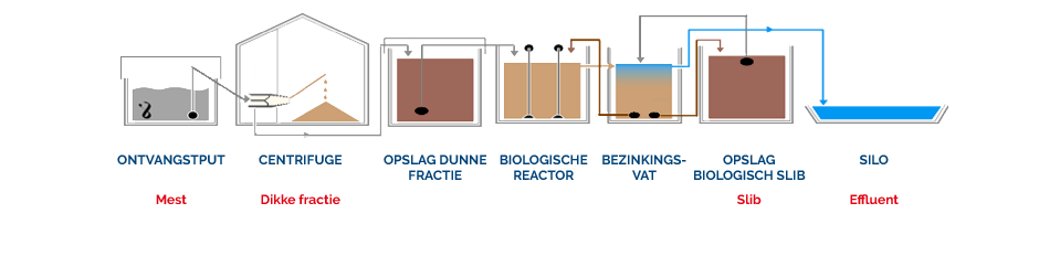 - Effluent: dit wordt afgevoerd en gebruikt als kaliumbemesting op het land voor het kweken van voornamelijk aardappelen, bieten, maïs en andere teelten